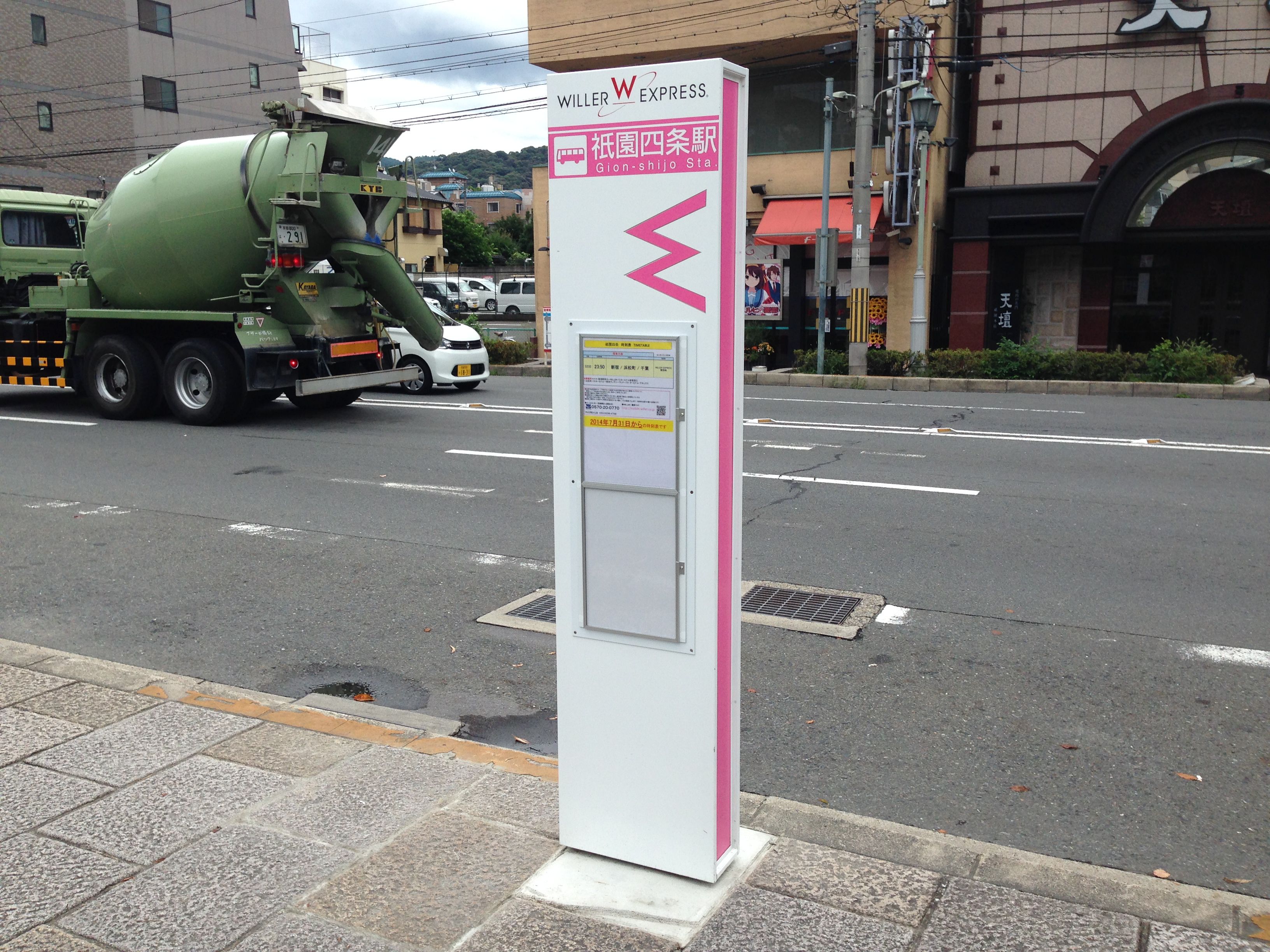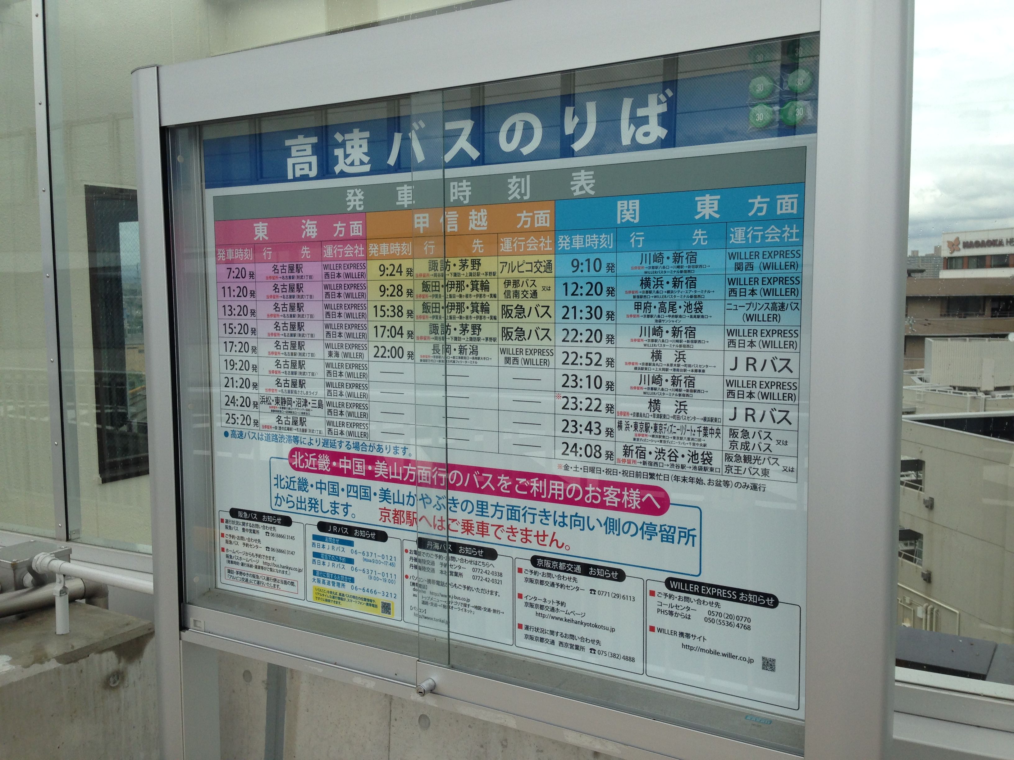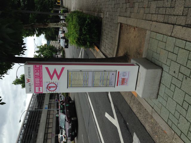 最終日ということで、南港線に乗車しようと京都駅へ向かいました。 前回乗車した際は発車時刻直前にアバンティ横から左折してやってきたのですが、今回は随分前から近くで待機していました。ここは「京都駅八条口4番」という停留所で、7月末のウィラーエクスプレスのダイヤ改正で設置された模様です。それを機に、なのかは知りませんが、どうやらここで待機に変更になったようですね。