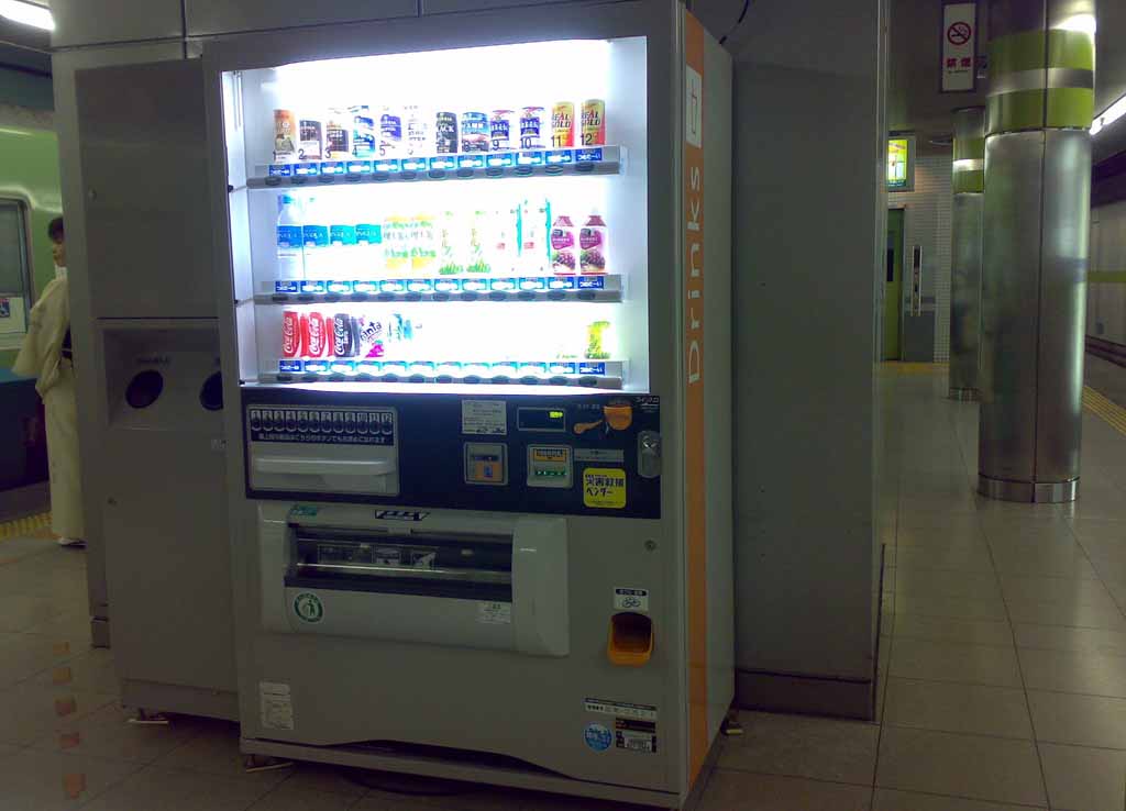 出町柳駅の自販機です。僕が、学校に導入してほしいタイプです。